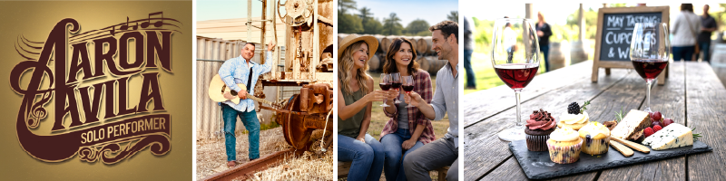 Local fav Aaron Avila joins us Sunday afternoon with solo guitar and vocals, playing a familiar mix of classics that fit the easy pace of the vineyard. Relaxed, recognizable, and just right for an afternoon with a glass of wine.